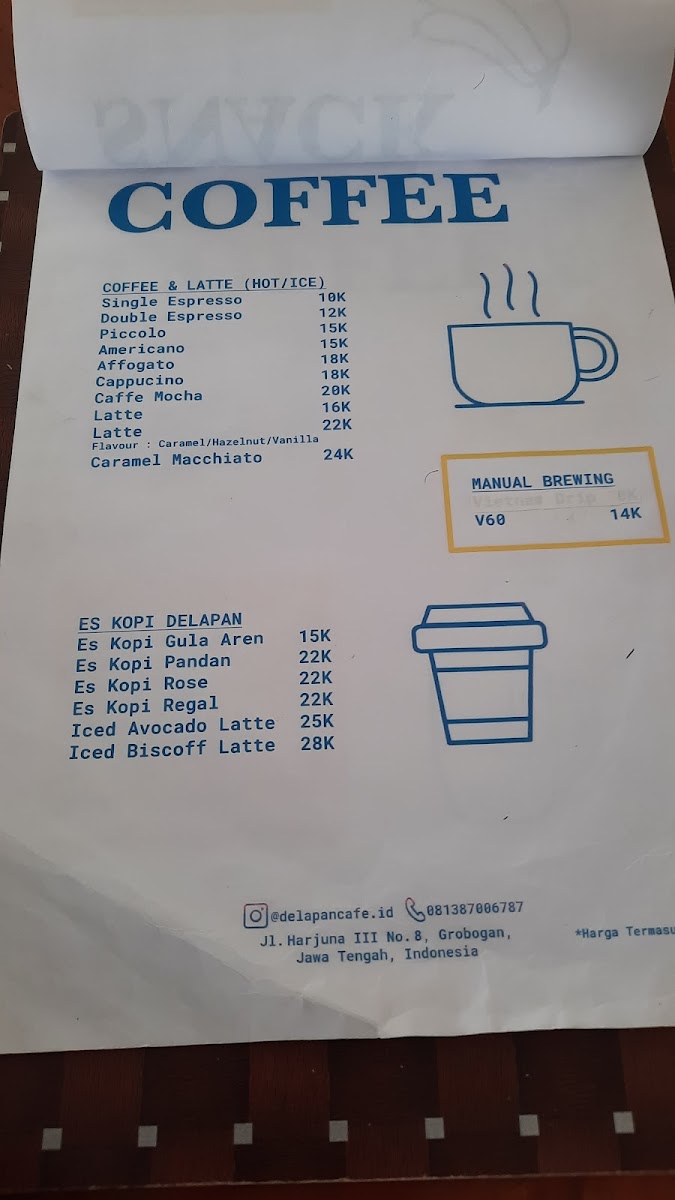 Welcome to DE LAPAN COFFEE & EATERY, a cozy haven located in the heart of Purwodadi, Central Java. This charming café offers a diverse menu that caters to both coffee lovers and food enthusiasts.
